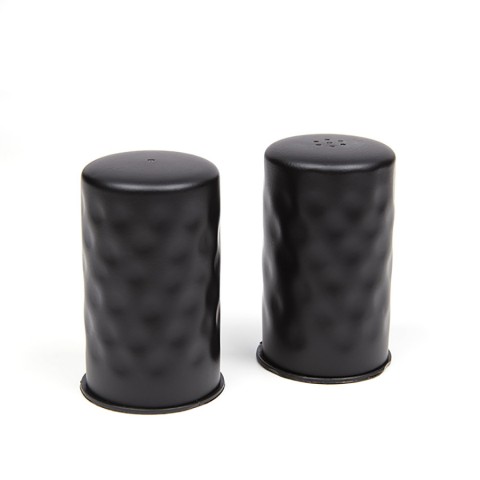 Salt & Pepper Set, 2 oz., 1-3/4" dia. x 2-3/4"H, stainless steel, hammered finish, black (hand wash only)