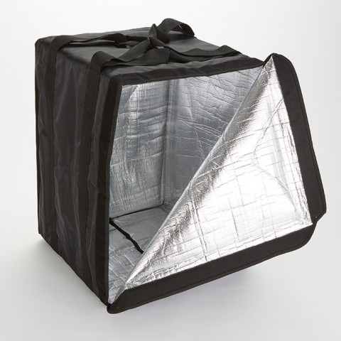 Deluxe Pizza Delivery Bag, 19" x 19" x 27", holds up to 10 boxes, heavy nylon construction, reinforced stitching, PVC foam, black with two handled strap (without rack)