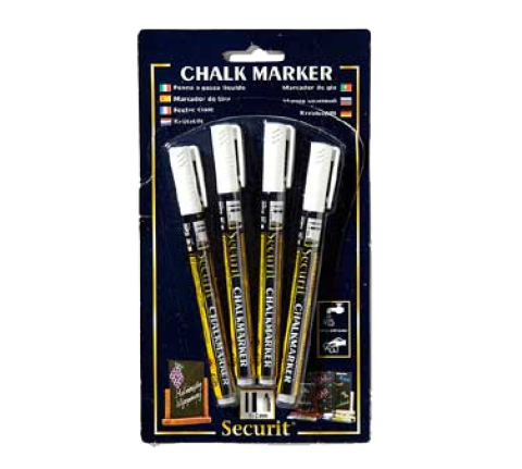 Securit® Chalk Markers, mini tip, white (blister 4 pack)