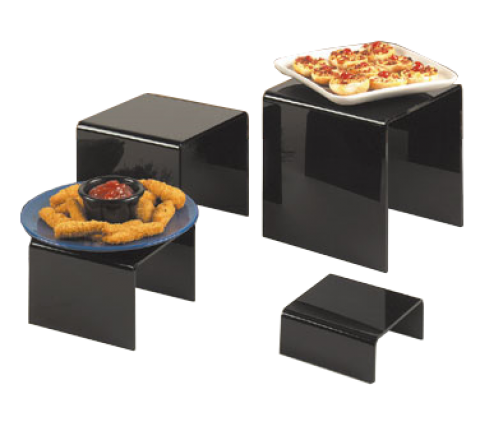 Riser Set, set of 4, various sizes, includes 1 of each: 8" sq. x 8"H, 7" sq. x 6"H, 6" sq. x 4"H, and 5" sq. x 2"H, acrylic, black (hand wash only)