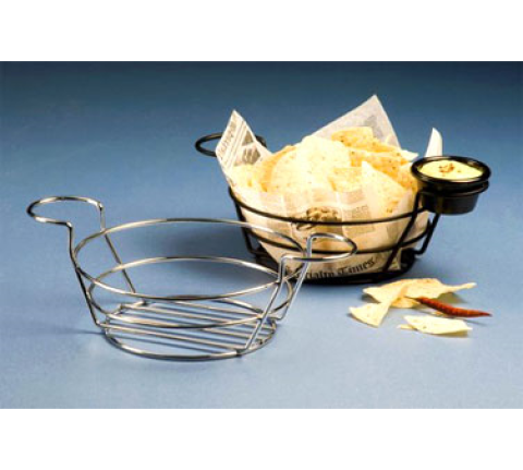 Basket, 8" dia. x 3-3/4"H, round, with built in ramekin holders (ramekins not included), wire, black finish (hand wash only)