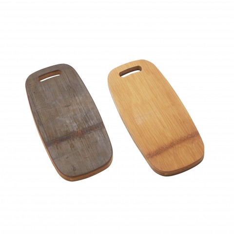 Serving Boards, 13-1/2" x 6"W x 3/4"H, oblong, with cut-out style handle, hand wash recommended, carbonized bamboo, light and dark brown dual patina finish (hand wash only)