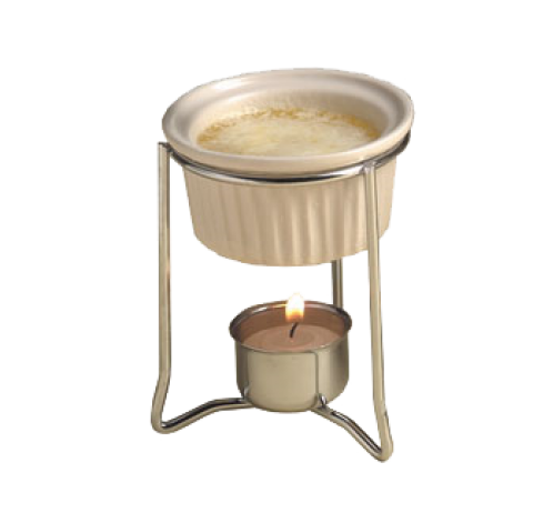 Butter Warmer Set, 4 oz. ceramic ramekin, 3-1/4" dia. x 3-7/8"H stand, votive holder and candle, chrome plated