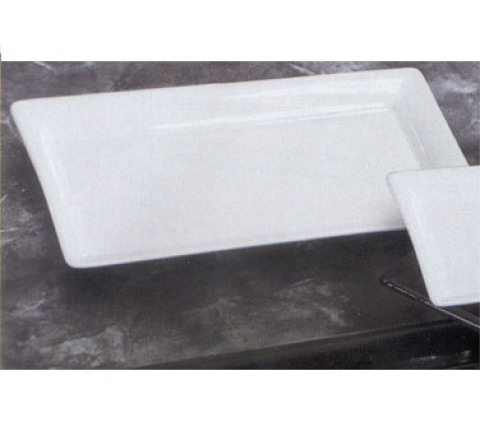 Prestige™ Platter, 18-1/4" x 9-1/4"W x 2-3/4"H, rectangular, wide rim, dishwasher-safe, lead-free, fits IS14 stand, ceramic, white