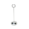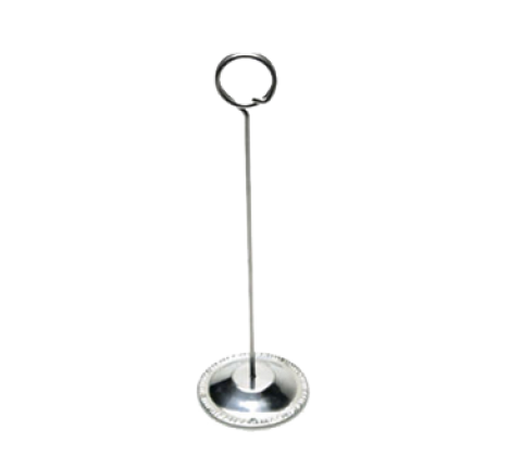 Card Holder, 2-5/8" dia. x 8"H, wire loop clip, weighted base, stainless steel, polished finish