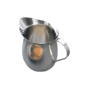 Creamer, 5 oz., 2-1/2" x 4-1/4" x 2-7/8"H, bell-shaped, without top, flat loop handle, contoured lip, stainless steel, mirror finish