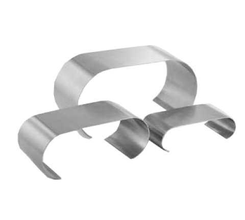 Riser Set, set of 3, contemporary design, curled ends, stainless steel, satin finish, includes: (1) 8-1/4"L x 4"W x 2"H, (1) 10-1/2" x 5-1/4"W x 4"H and (1) 12-1/2"L x 6"W x 6-1/2"H