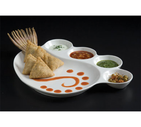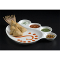 Impression Plate, 12-1/4"L x 11"W x 1"H, divided, four compartment sauce cup, porcelain