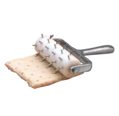 Dough Docker, 6" wide x 7-1/2" long, 3/8" stainless steel pins embedded in plastic roller, one-piece cast aluminum handle (hand wash only)