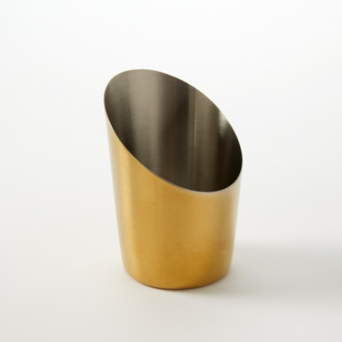 Fry Cup, 12 oz., 2.8" dia., x 4.5"H, Angled, stainless steel, gold satin