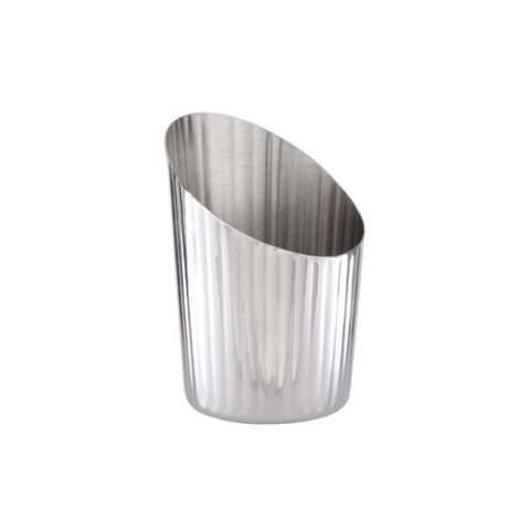 Fry Cup, stainless steel, angled, fluted, 12 oz., Stainless Steel Fry Cups