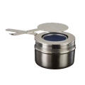 Chafer Fuel Holder, 3-3/4" dia. x 2-1/2"H, 6-3/4" with handle, stainless steel