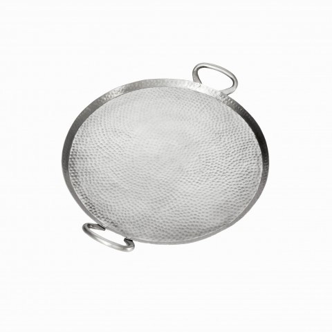 Griddle, 20-1/2"L (with handle) x 17"W x 2"H, round, stainless steel, hammered finish