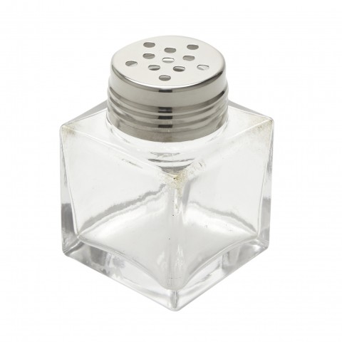 Vintage Shaker, 6 oz., 2-5/8"L x 2-5/8"W x 3-3/4"H, square, with cheese top, stainless steel and glass