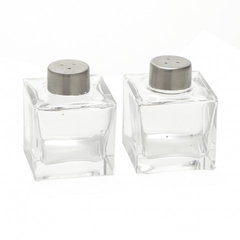 Vintage Salt & Pepper Shaker Set, 2 oz., 2"L x 2"W x 2-1/2"H, square, stainless steel and glass