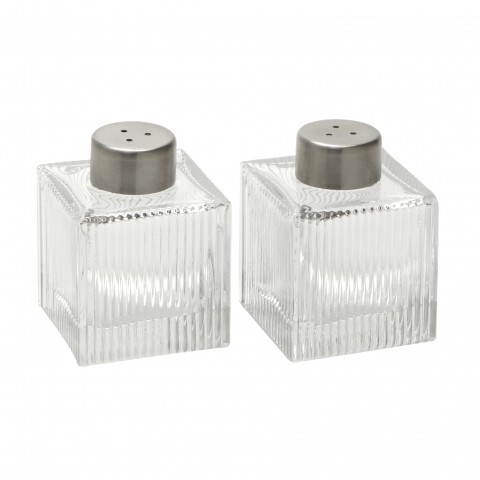 Vintage Salt & Pepper Shaker Set, 2 oz., 2"L x 2"W x 2-1/2"H, square, ribbed, stainless steel and glass