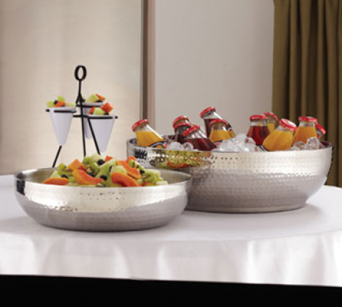 Serving Bowl, 250 oz., 14-3/8" dia. x 3-3/4"H, double wall insulated, stainless steel, hammered finish