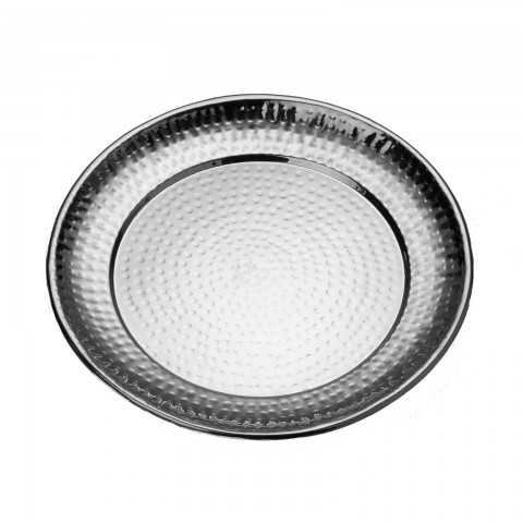Serving Tray, 14" dia. x 1-1/8"H, round, stainless steel, hammered finish