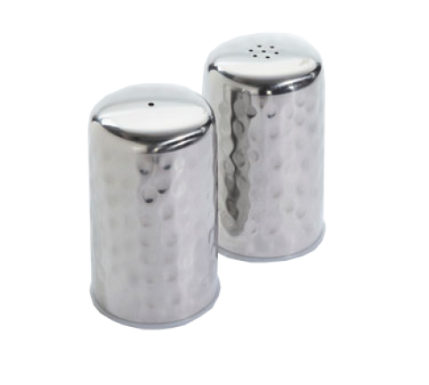 Salt & Pepper Shaker Set, 2 oz., 1-3/4" dia. x 2-3/4"H, round, with plastic stopper, stainless steel, hammered finish