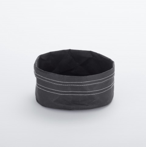Kraft Bag, 7" dia. x 4" H, foldable rim, machine washable, reusable, black, paper bag