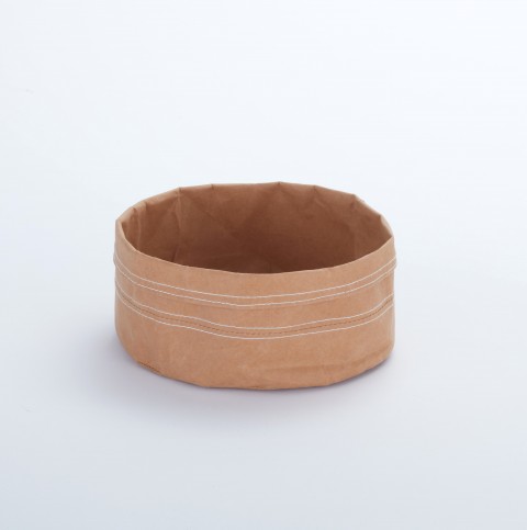 Kraft Bag, 7" dia. x 4" H, foldable rim, machine washable, reusable, khaki, paper bag