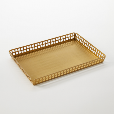 Platter, 10" x 7" x 1"H, rectangular, stainless steel, gold