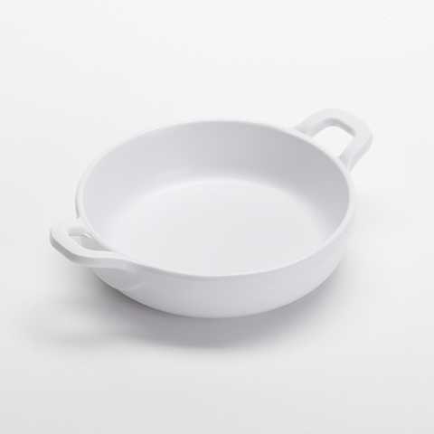 Casserole, 6 oz., 4-3/8" dia. X 1-1/4" H, 6" L (with handle), Round, Melamine, White