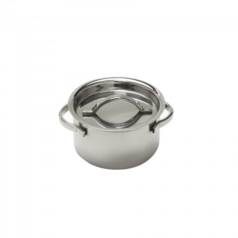 Mini Pot, 4 oz., 2-5/8" dia. x 1-3/4"H, 3-1/4" O.A.L with handles, round, with lid, stainless steel