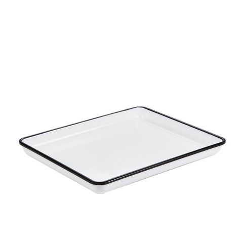 Endurance™ Platter, 12-7/8"L x 10-1/4"W x 1-1/8"H, rectangular, break-resistant, dishwasher safe, melamine, white with black rim