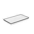 Endurance™ Platter, 12-3/4"L x 7"W x 1-1/8"H, rectangular, break-resistant, dishwasher safe, melamine, white with black rim