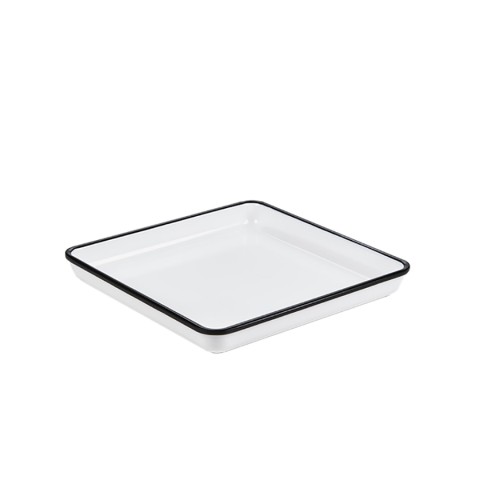 Endurance™ Platter, 9-7/8"L x 9-7/8"W x 1-1/8"H, square, break-resistant, dishwasher safe, melamine, white with black rim