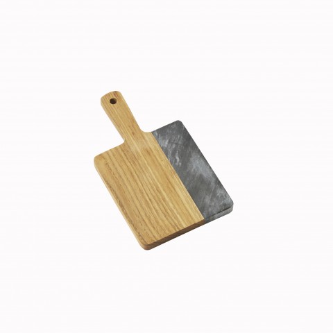 Serving Peel, 5-5/8"L x 5-1/4"W x 1/2"H, square, 9" O.A.L. with handle, olive wood/black marble (hand wash only)