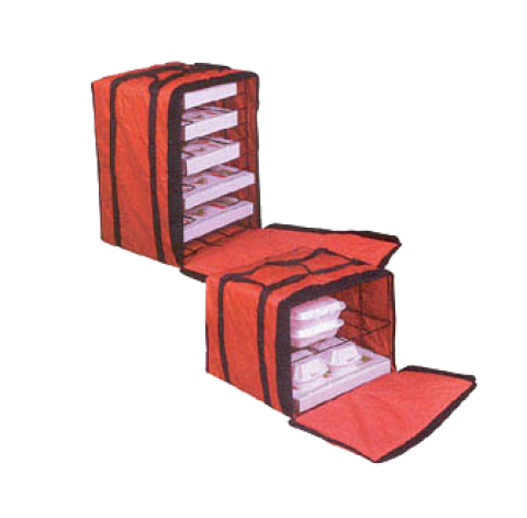 Deluxe Pizza Delivery Bag with Rack, 19" x 19" x 14", holds up to 6 boxes, heavy nylon construction, reinforced stitching, PVC foam, red with black two handled strap