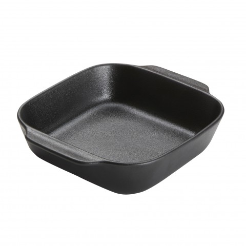 Casserole, 24 oz., 6-1/2"L x 6-1/2"W x 2"H, 8-1/4"L with handles, square, porcelain, black matte finish