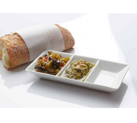 Sauce Dish, 1-1/2 oz., 5-3/4"L x 3-1/8"W x 1"H, 3-compartment, porcelain