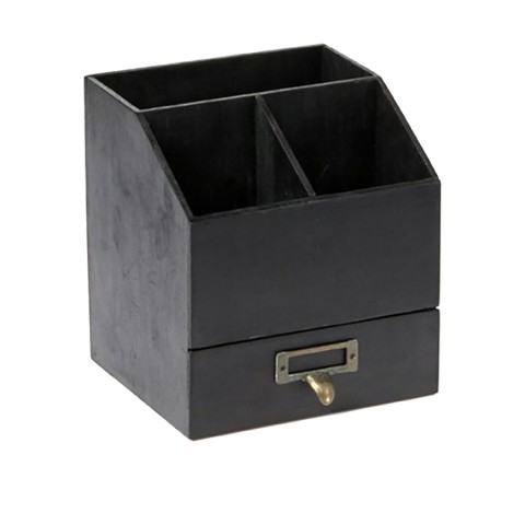 Caddy, 4-compartment (with drawer), 6-5/8"L x 6-1/2"W x 7-1/4"H, rectangular, poplar wood, black (hand wash only)