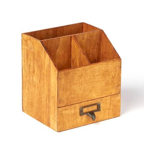 Caddy, 4-compartment (with drawer), 6-5/8"L x 6-1/2"W x 7-1/4"H, rectangular, poplar wood, natural (hand wash only)