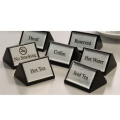 Decaf Sign, triangular, 3" W x 1-3/4" H, wooden block, black with silver labels (hand wash only)