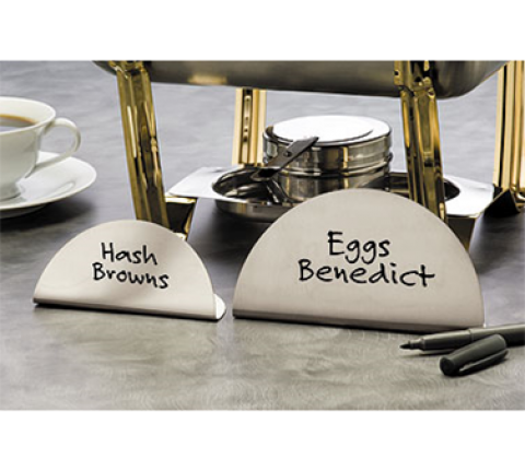 Menu Card Sign, 5"L x 2-1/2"W x 2-5/8"H, write on, wipe off, stainless steel