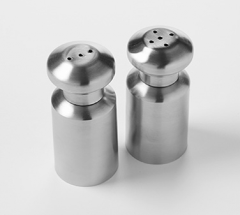 Mini Salt and Pepper Set, 3 oz. each, 1-3/4" dia. x 4"H, stainless steel, satin finish (features 3 holes and 5 holes shakers)