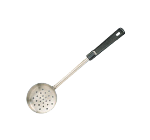 Spooner, 6 oz., 3-3/4" diameter perforated stainless steel bowl, ladle style, 10-3/4" bakelite grip handle, 1-piece, black