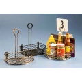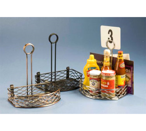 Birdnest Condiment Rack, 5-5/8" x 8" x 9-1/8"H, semi round with flat back, clips for menu, center handle with slot for table number (not included), wire, black finish (hand wash only)