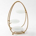 Buffet Stand, 3-tier, 12"L x 7"W x 20-1/2"H, oval, includes 6" & 7-1/4" dia. built-in white glass plates, with carry handle, steel frame, gold finish (hand wash only)