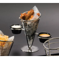 Ironworks™ Basket, 5" dia., x 9" H, conical, 1-cone basket with (2) 3 oz. black ramekins, stainless steel