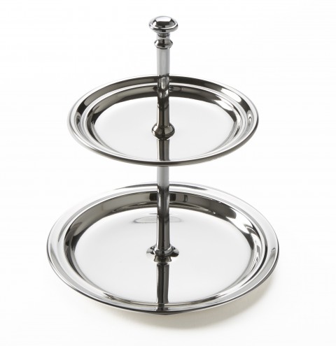 Display Stand, two-tier, 7" dia. x 7-3/4"H, round, stainless steel