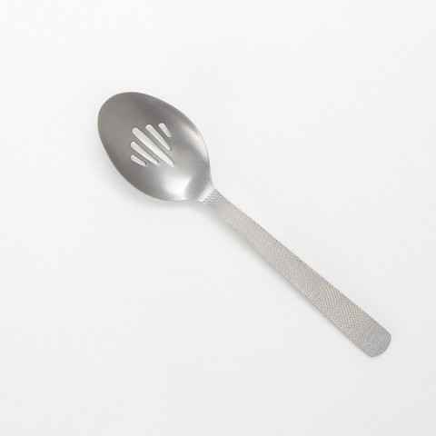 Serving Spoon, 10"L, slotted, hammered, 18/0 stainless steel, vintage finish