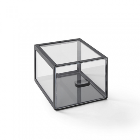 Black Twilight Modular Display Case, half size, 13-3/4" W x 7-7/8" H, clear acrylic drawers, matte black metal frame, stacking pins and top openings for customizable configuration