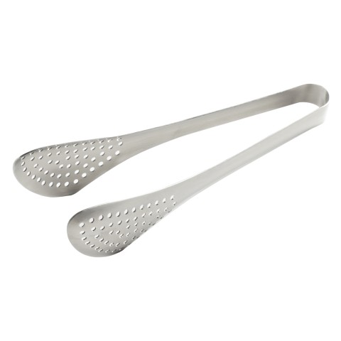 Serving Tongs, 8-1/2"L x 2-1/2"W x 2-1/2"H, perforated, stainless steel, satin finish
