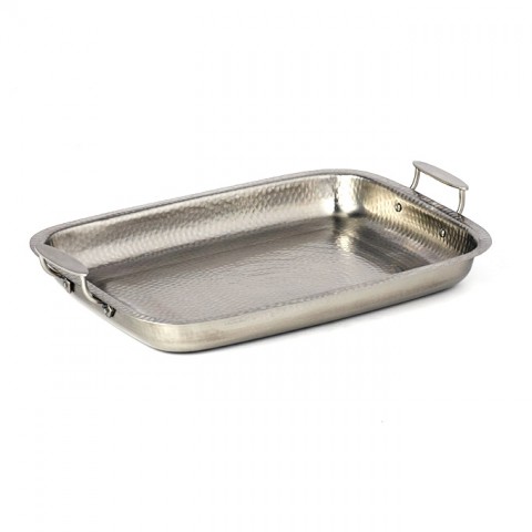 Serving Pan, 168 oz., 18-1/4"L x 14"W x 2"H, rectangular, 20-1/8"L with handles, stainless steel, hammered finish