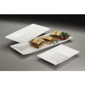 Serving Platter, 12-1/2"L x 8-1/4"W x 1-1/2"H, trapezoid, slim rim, break-resistant, melamine, white